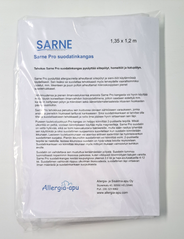 NEUHEIT! Das extrem effiziente Sarne Pro Filtervlies stoppt Pollen, Schimmelsporen und Straßenstaub